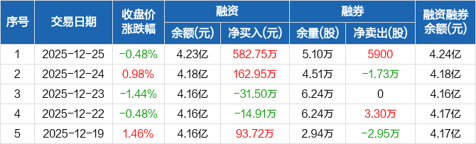 华孚时尚:融资净买入582.75万元,融资余额4.23亿元(12-25)