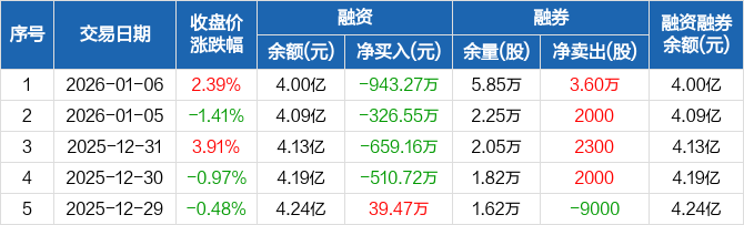华孚时尚:融资余额4亿元,创近一年新低(01-06)