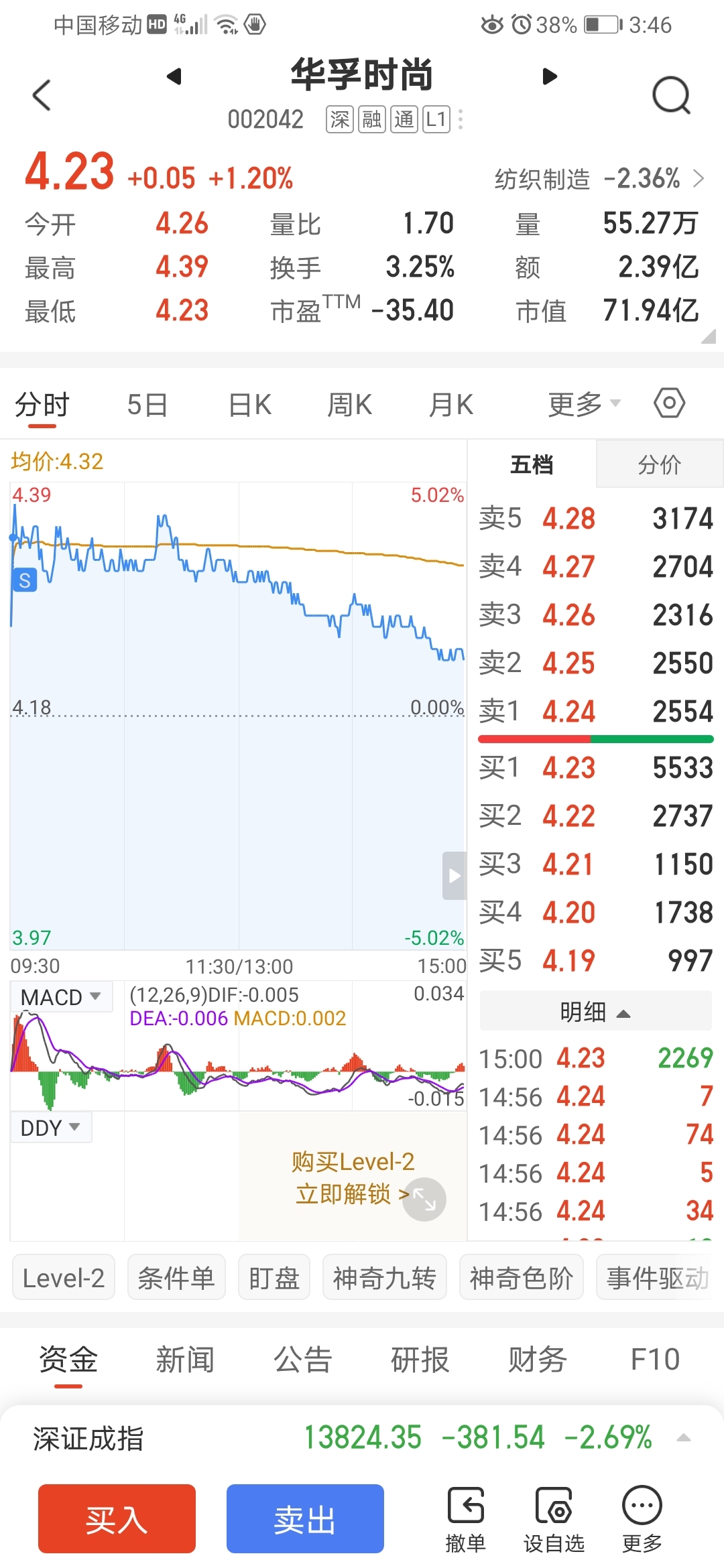 $华孚时尚(SZ002042)$ 兄弟我先撤了留下的发财