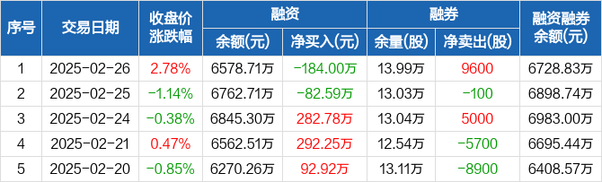 兔宝宝:融资净偿还184万元,融资余额6578.71万元(02-26)
