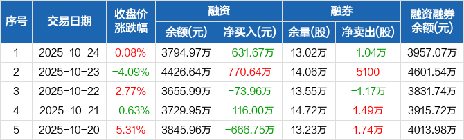 兔宝宝:融资净偿还631.67万元,融资余额3794.97万元(10-24)
