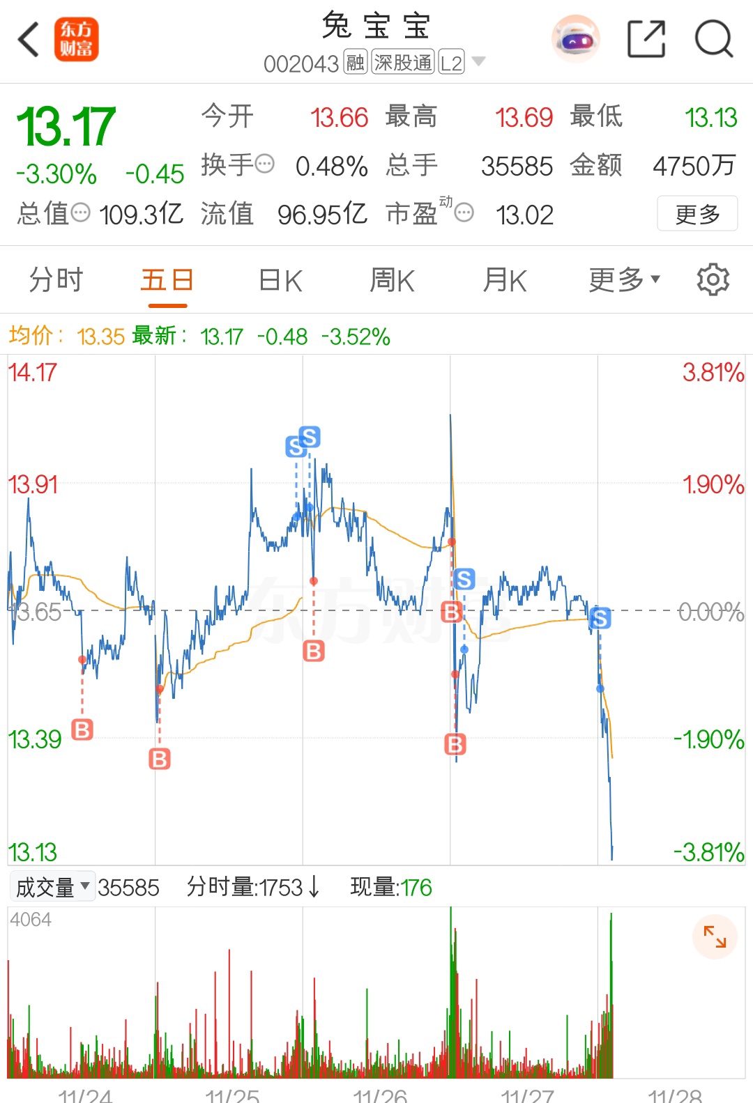 $兔 宝 宝(SZ002043)$ 清仓了,呼吸战法都赚不到钱。唉
