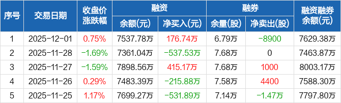 兔宝宝:融资净买入176.74万元,融资余额7537.78万元(12-01)