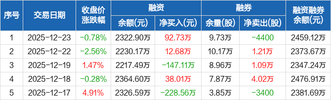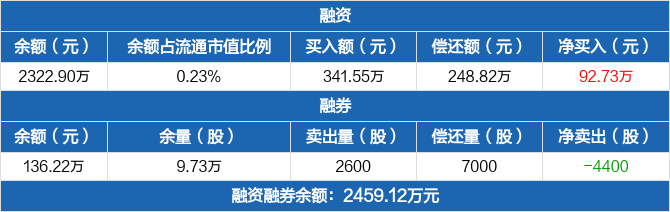 兔宝宝:融资净买入92.73万元,融资余额2322.9万元(12-23)
