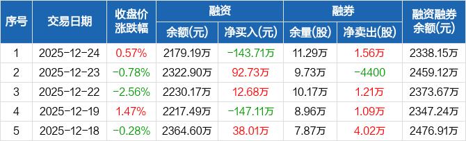 兔宝宝:融资余额2179.19万元,创近一年新低(12-24)