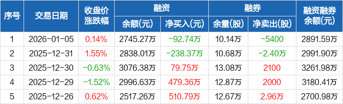 兔宝宝:融资净偿还92.74万元,融资余额2745.27万元(01-05)