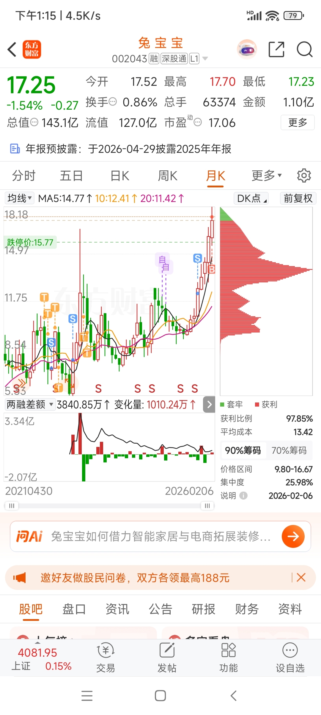 温馨提示: 1.根据《证券法》规定,禁止编造、传播虚假信息或者误导性信息,扰乱证券市场;2.用户在本社区发表的所有资料、言论等仅代表个人观点,与本网站立场无关,不对您构成任何投资建议。用户应基于自己的独立判断,自行决定证券投资并承担相应风险。《东方财富社区管理规定》