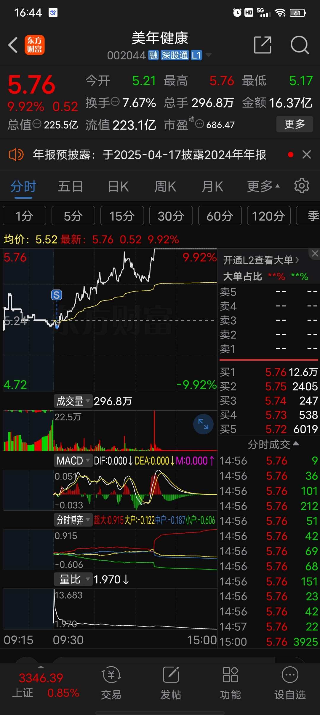 $美年健康(SZ002044)$ 嗯,又卖飞了
