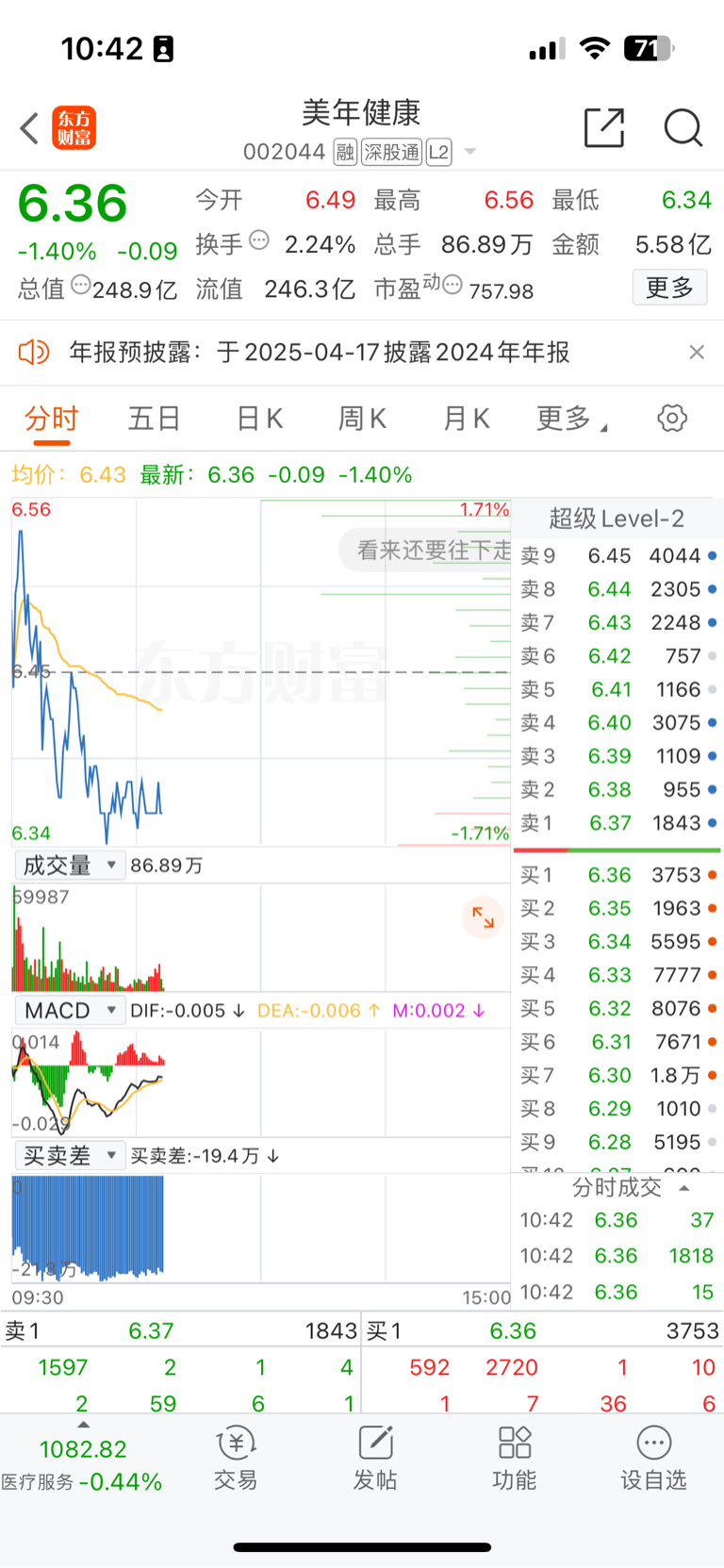$美年健康(SZ002044)$ 7777主力说要跌停
