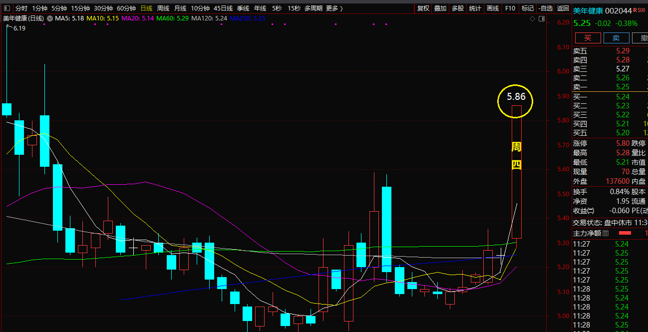 本大师打开透视眼观测:今收5.33,周四涨停板!