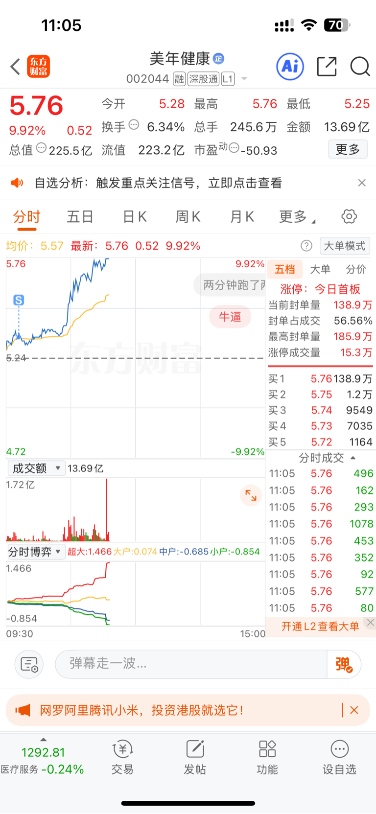 $美年健康(SZ002044)$ 拿了三天,真是无语,这波纯小丑