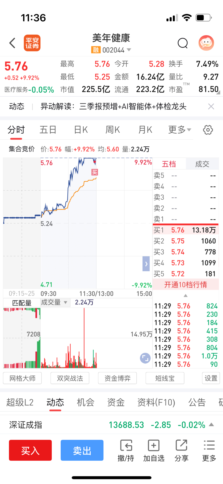 今天接了一笔美年健康,开盘上了一笔青岛金王