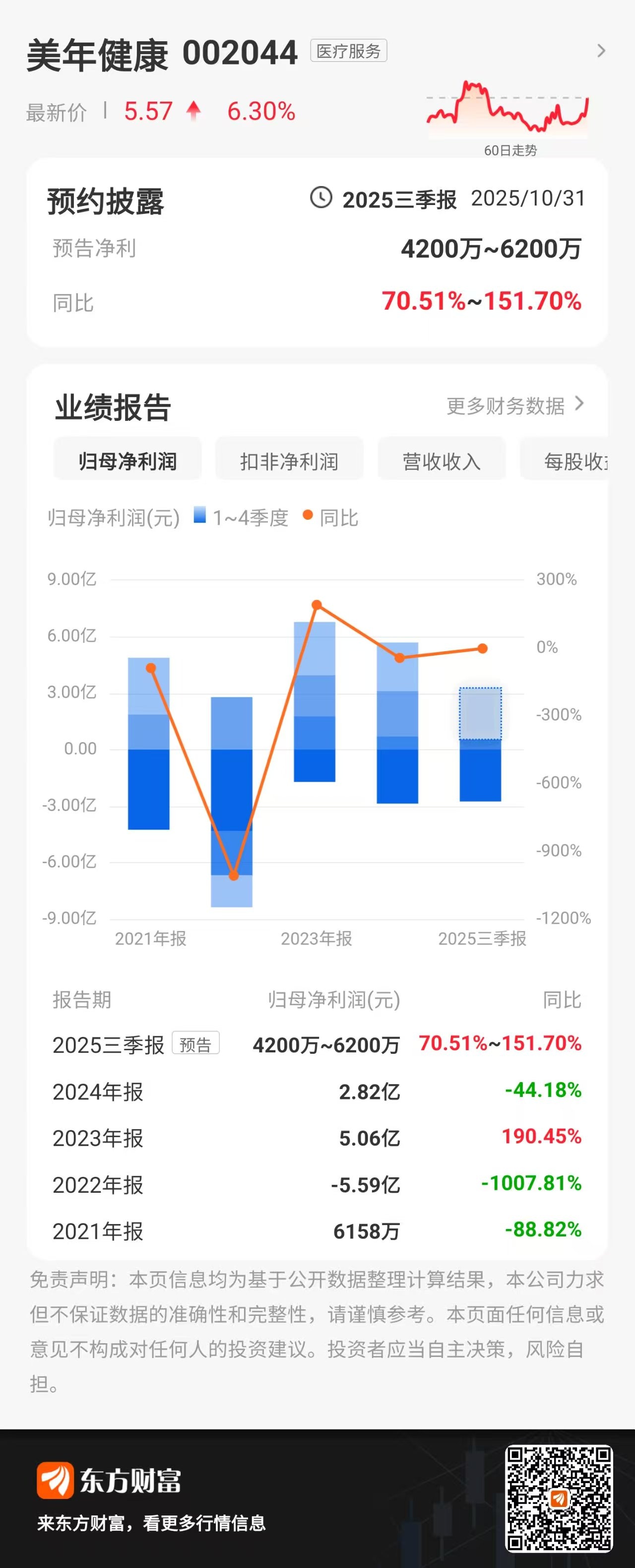 $美年健康(SZ002044)$ #强势机会# 今晚出业绩,明天再来一波人接