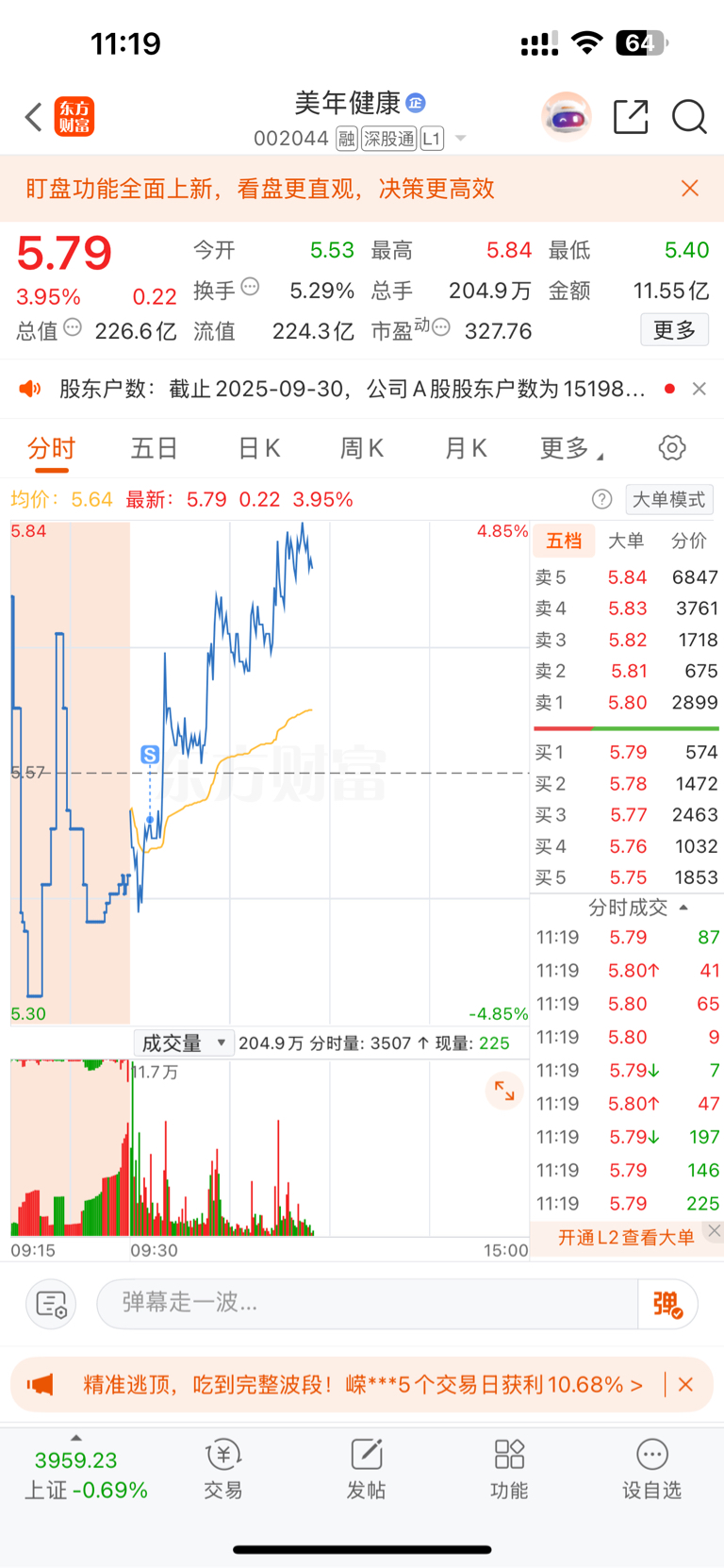 $美年健康(SZ002044)$ 我是韭菜
