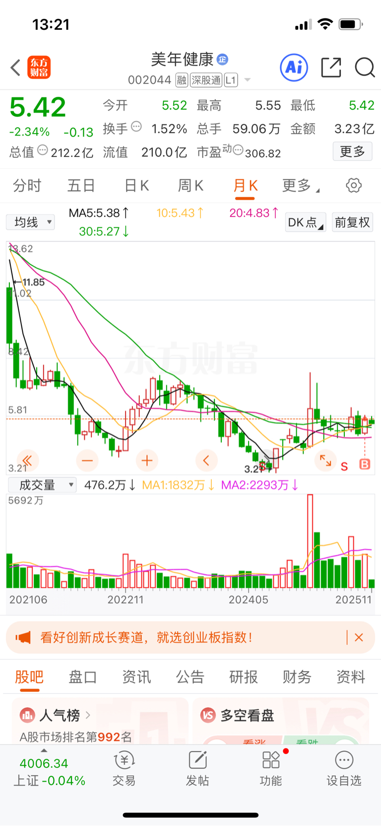 $美年健康(SZ002044)$ 打开月线一看,多大点事啊