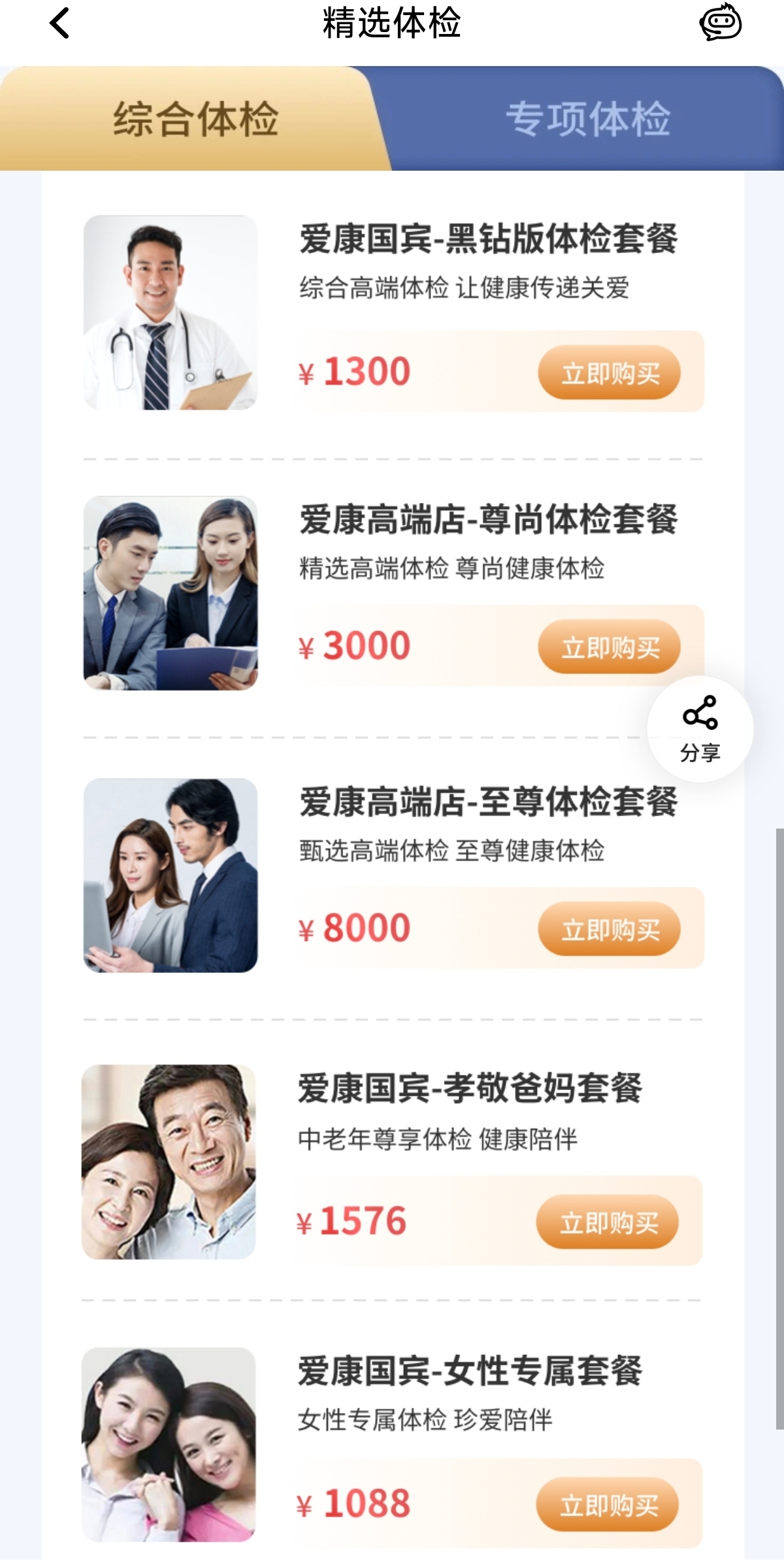$美年健康(SZ002044)$ 爱康国宾套餐好