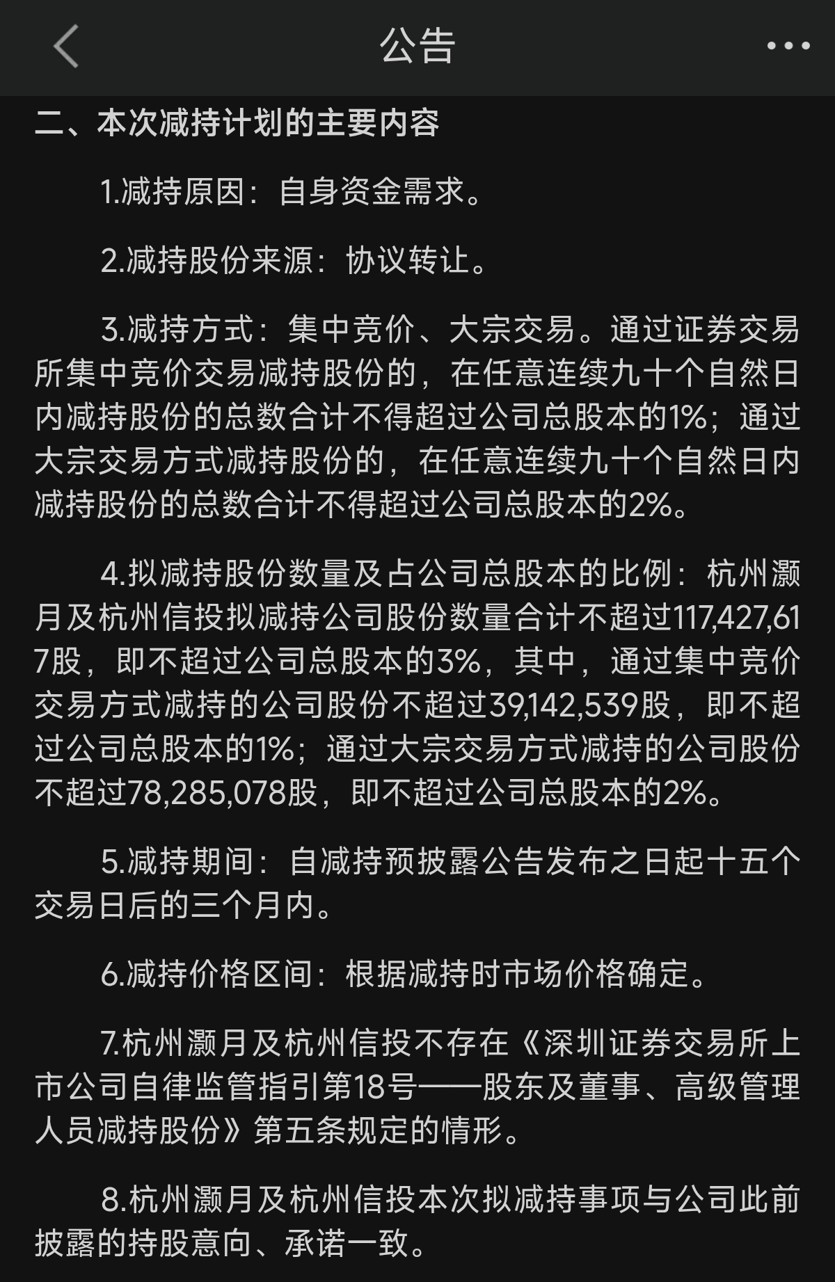 15个交易日后减持……