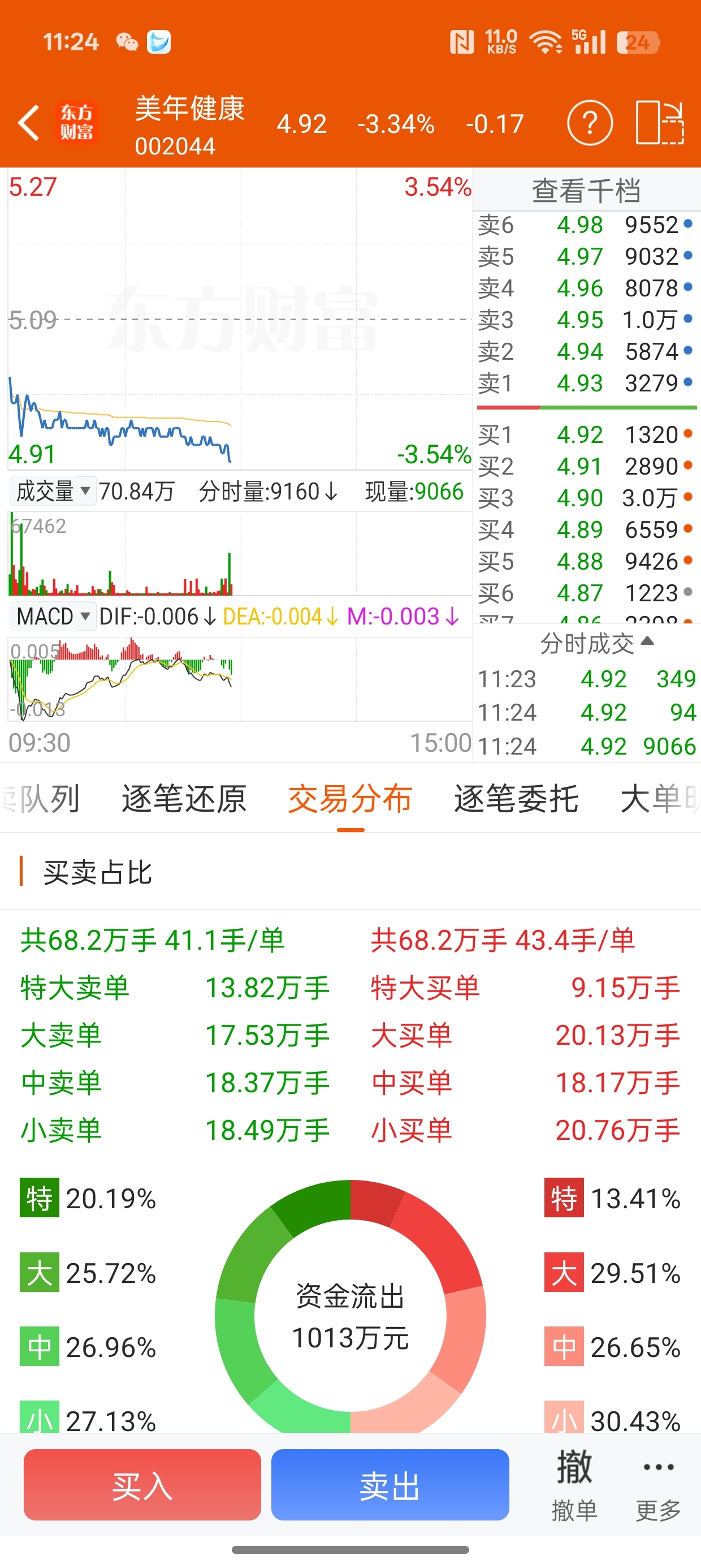 开始急杀了,万手哥来开杀!一下正流入变负流出了!