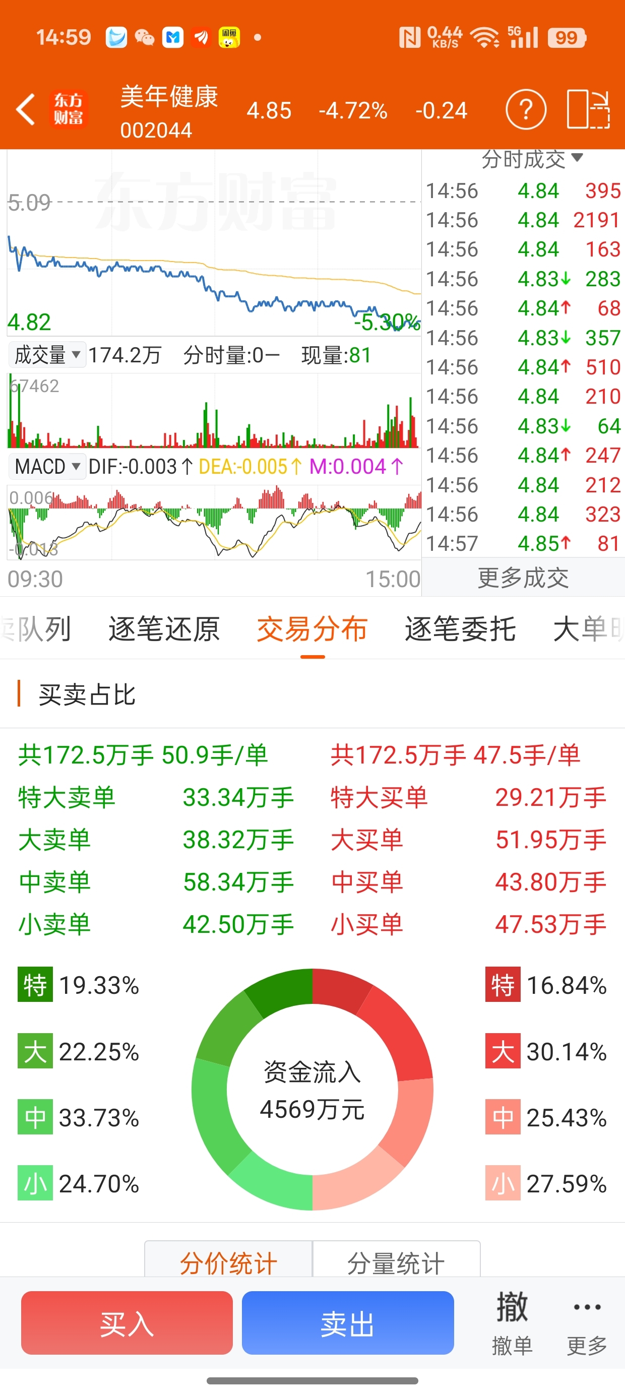$美年健康(SZ002044)$ 大哥尾盘抄回来了!今日正流入