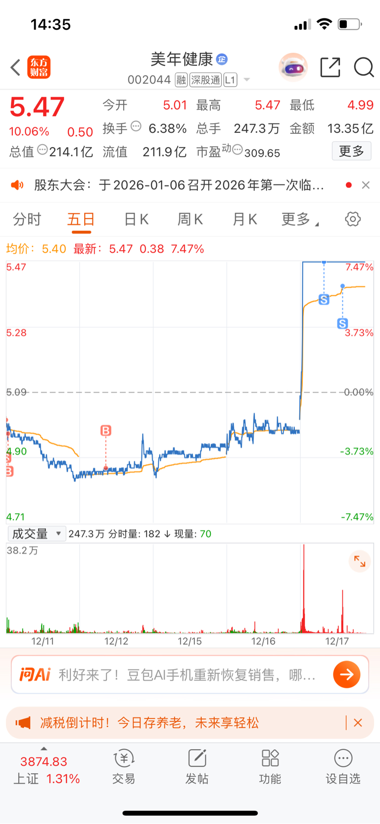 $美年健康(SZ002044)$ 挂的条件单,被洗出去了