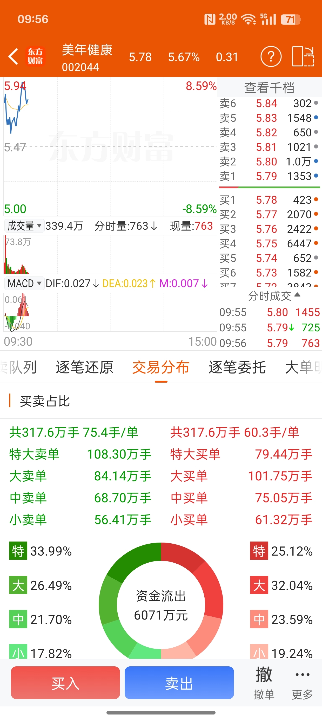 $美年健康(SZ002044)$ 10点了分歧还是有!力不够