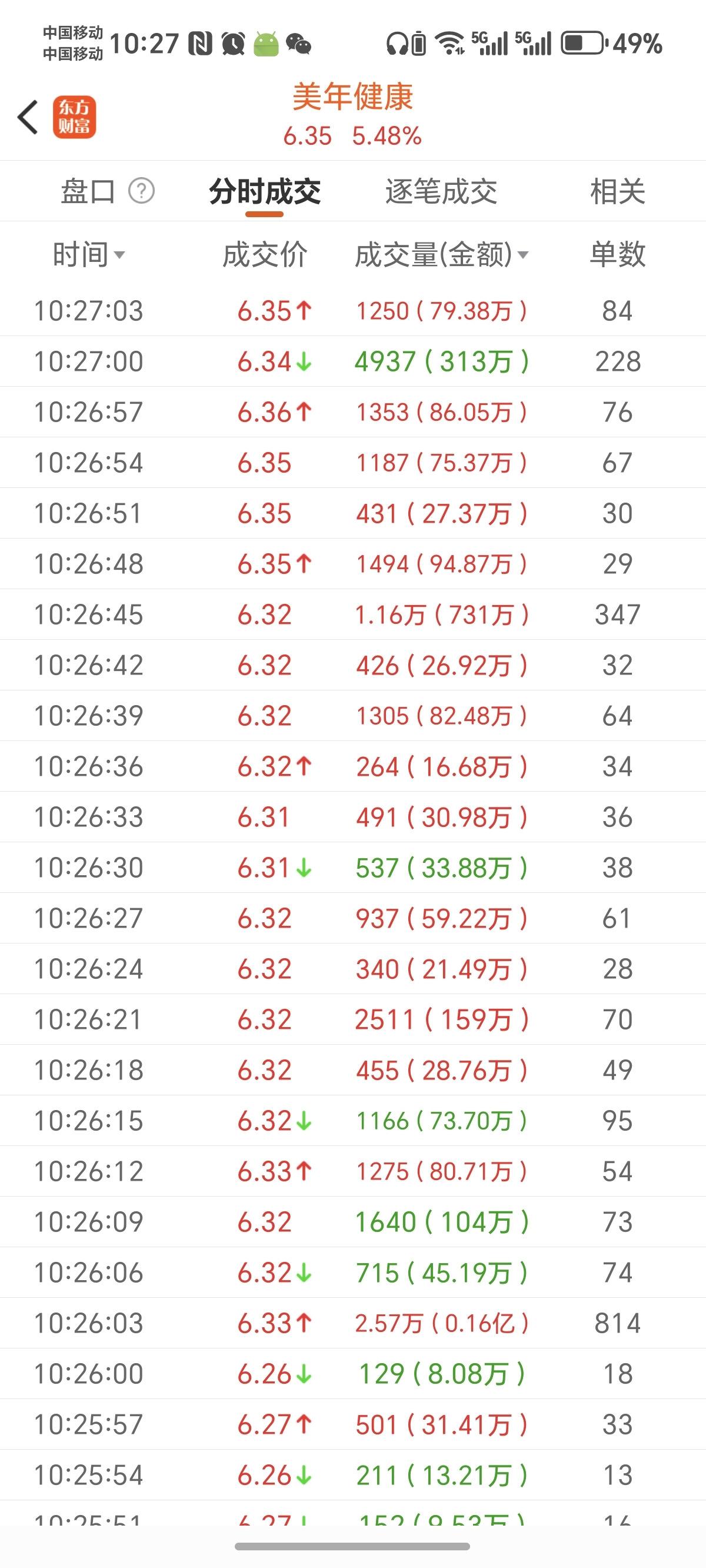 $美年健康(SZ002044)$ 这个1.16万手的没拉股价