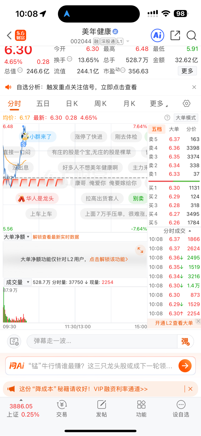 $美年健康(SZ002044)$ 追高被套了吧,哈哈,和gou庄不能格局