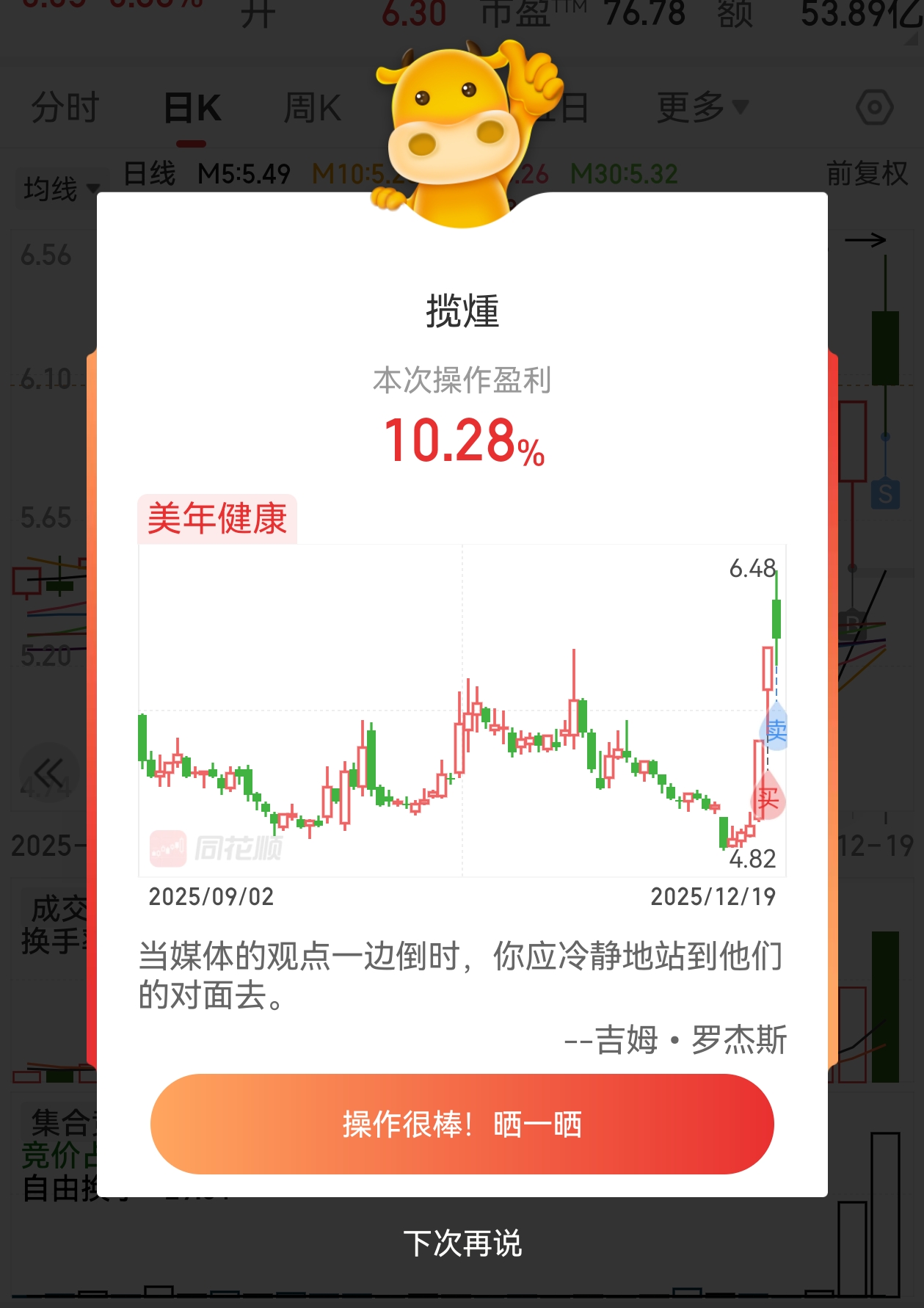 $美年健康(SZ002044)$ 卖完嗮下气主力,周一拉个涨停让我后悔,让今天进来的兄弟吃肉