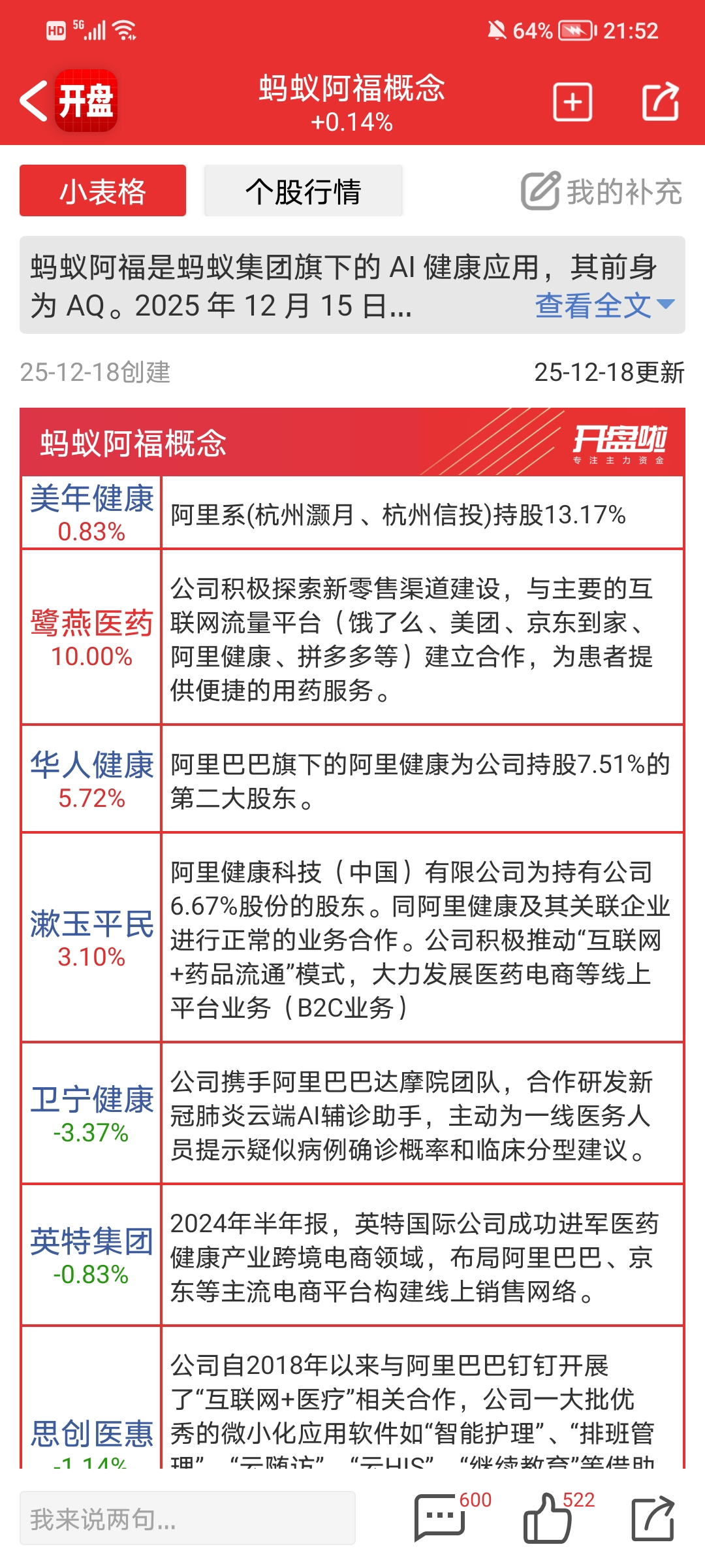 $美年健康(SZ002044)$ “开盘啦”周五才给他创建的题材表,还没开始正式发酵