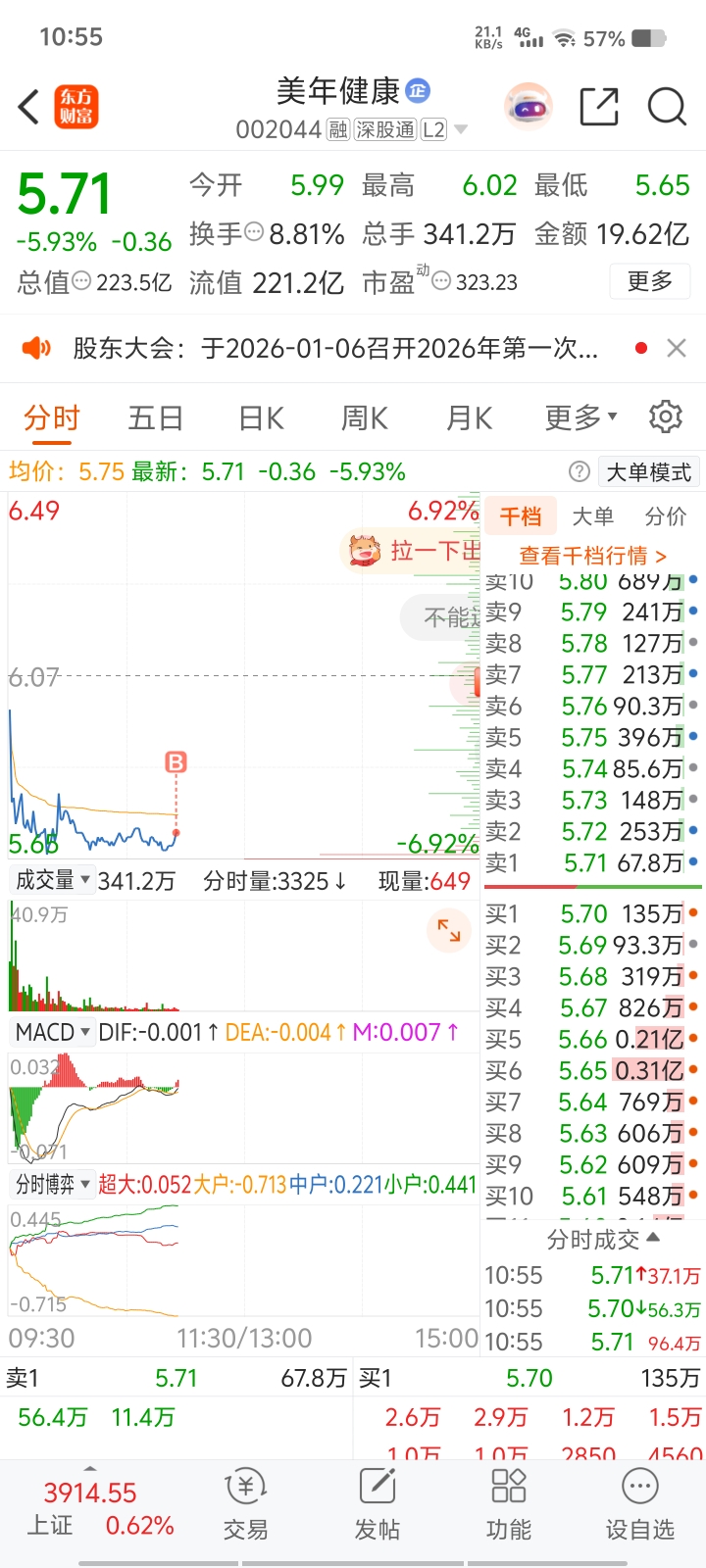 $美年健康(SZ002044)$ $平潭发展(SZ000592)$ $华菱线缆(SZ001208)$ 5.70低吸了,祝我好运