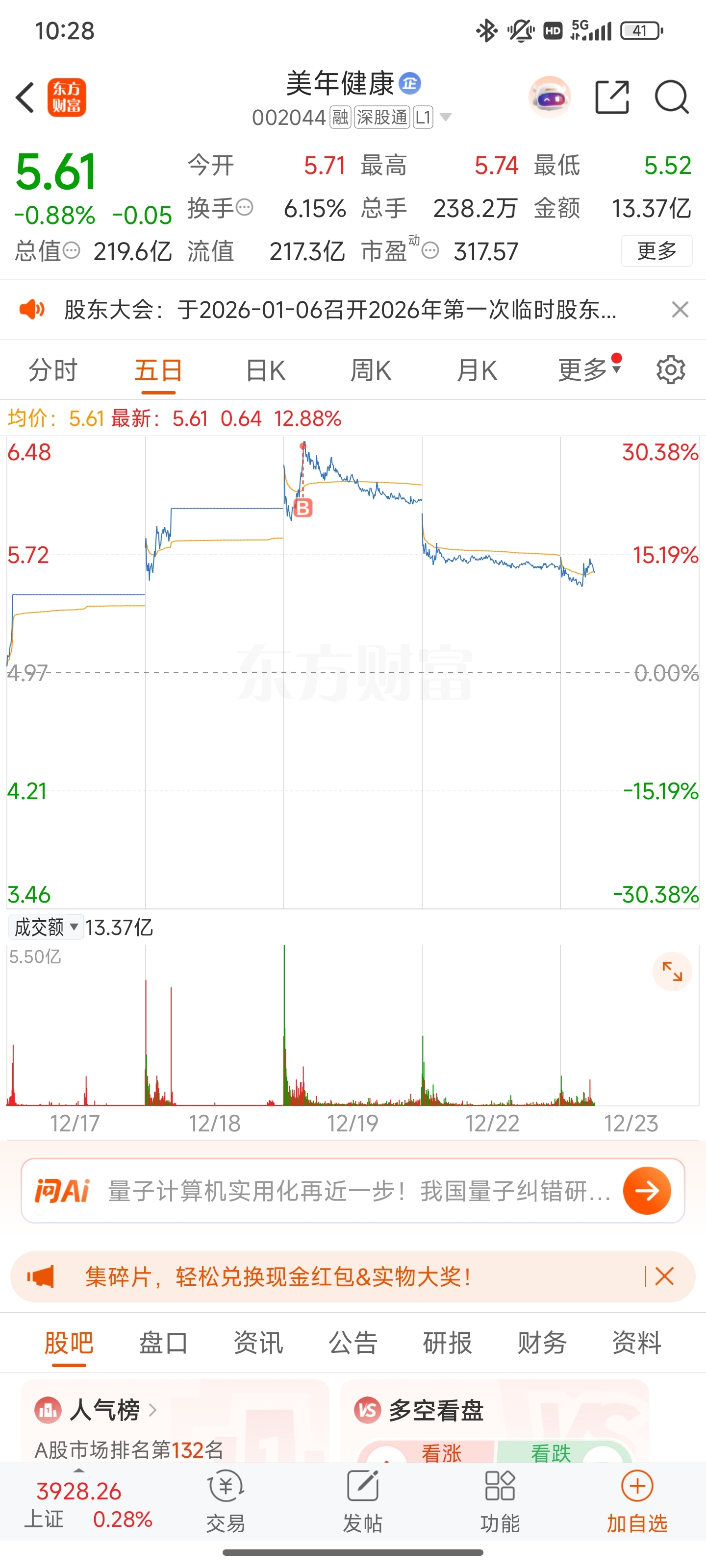 $美年健康(SZ002044)$ 我一点都不看好,我tm是没办法套太多了,你们现在买的才是真韭菜