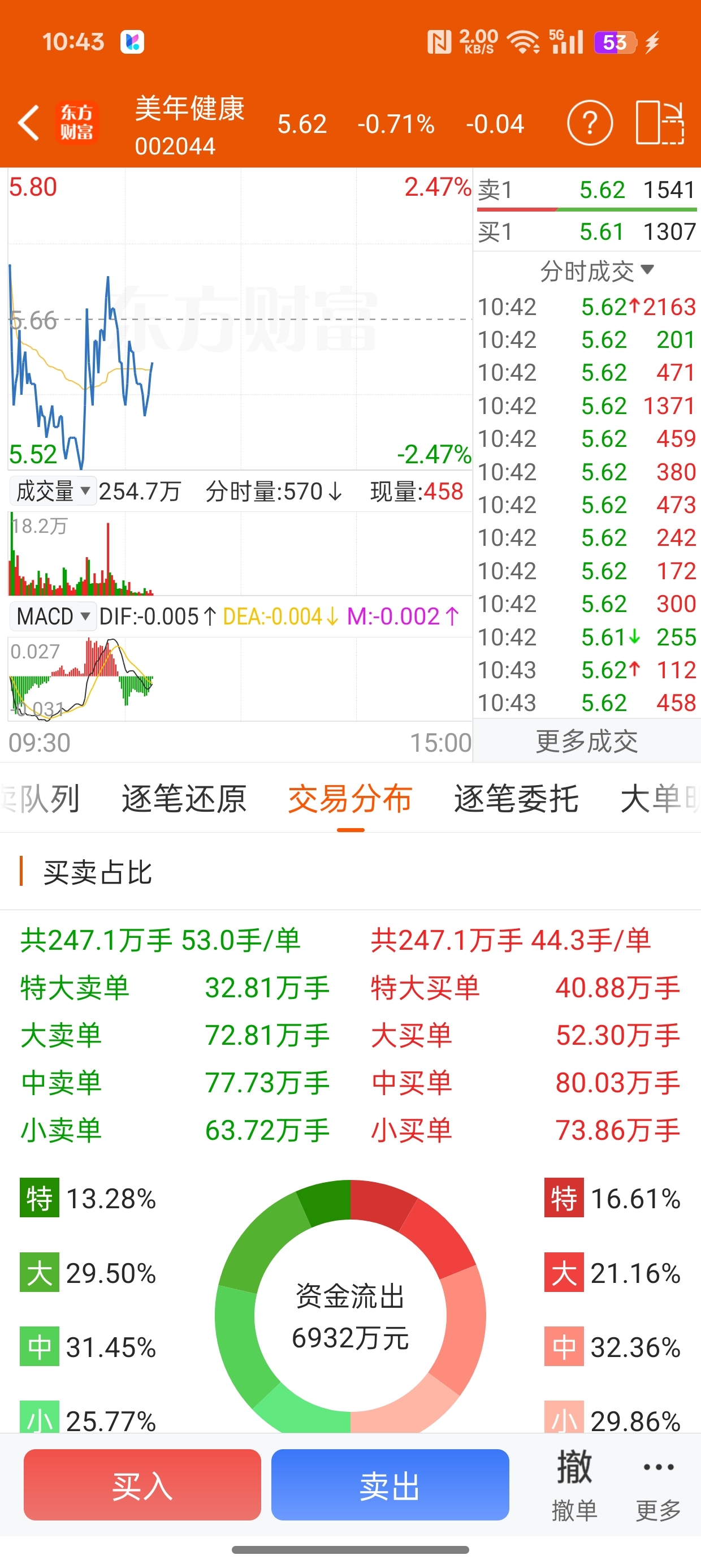 $美年健康(SZ002044)$ 大哥拉了一口,是不是诱多一下?一值在流出!