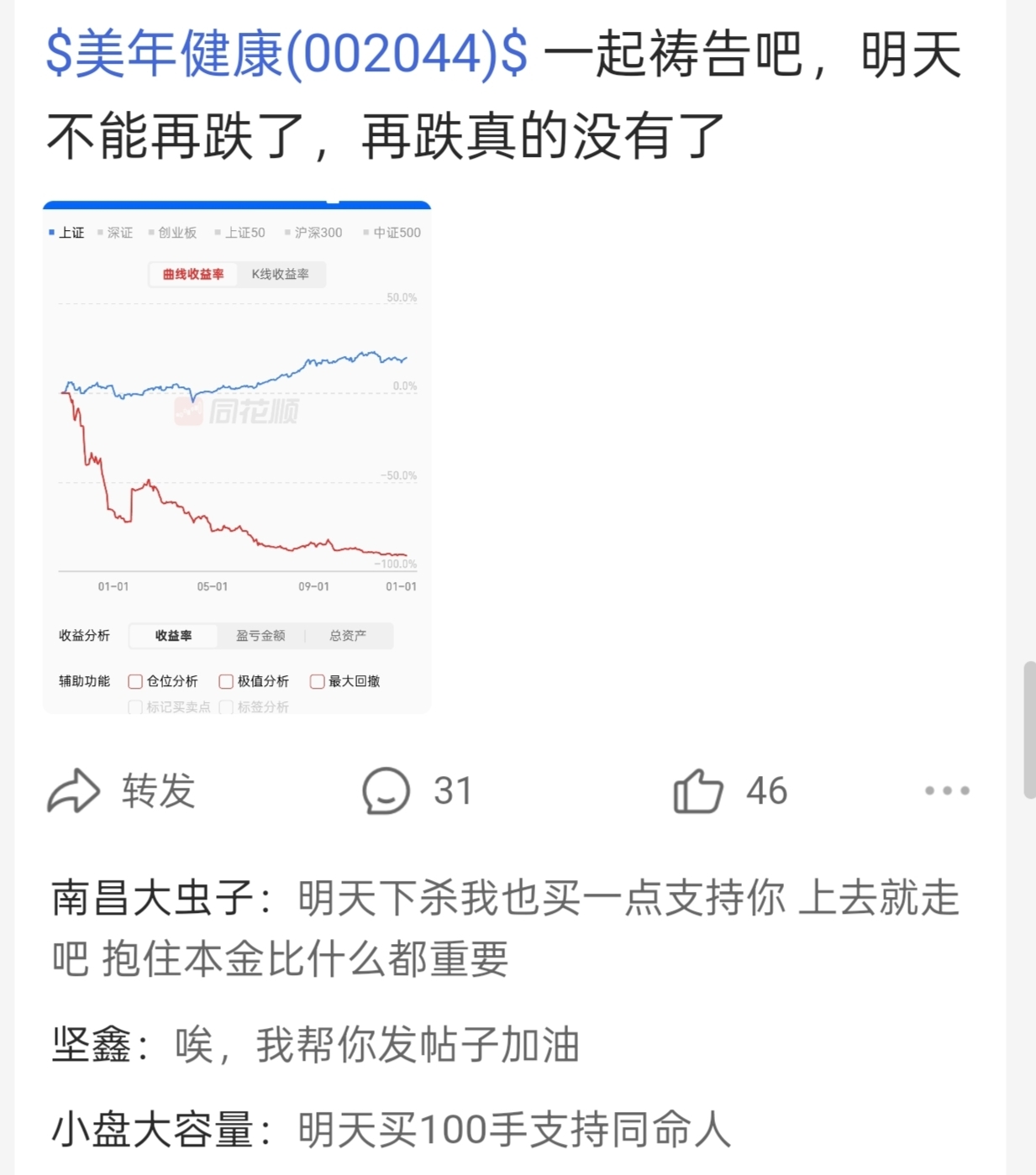 $美年健康(SZ002044)$ 两板的票玩这种走法 不愧是大A 这边建议散户都销户 留机构和量化玩得了 昨天同花顺那边有个散户都快亏的想跳了 估计资金都在这支票上了 还要给人套了