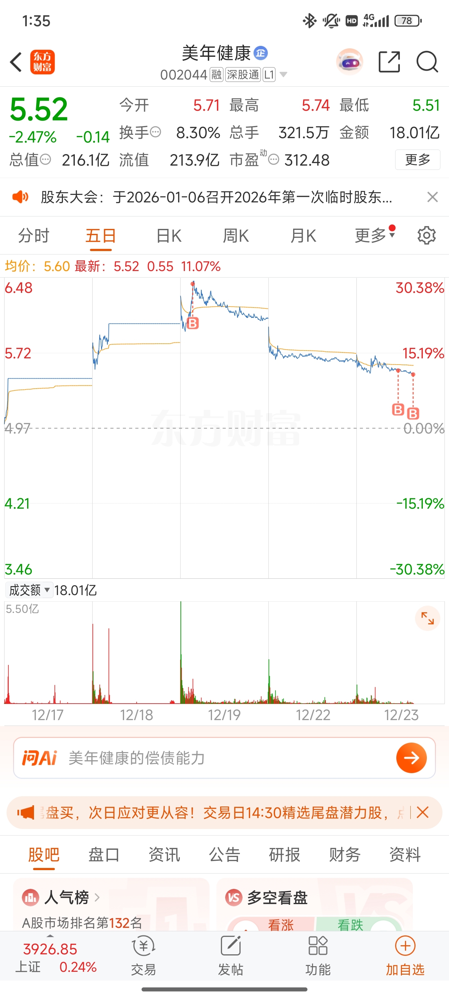 $美年健康(SZ002044)$ 越跌我越买,割肉是不可能割肉的,这辈子都不可能割肉了,明天继续加仓。