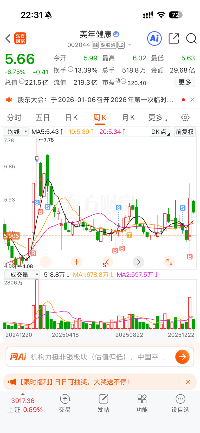 $美年健康(SZ002044)$ 继续砸,还没到成本线,砸下去