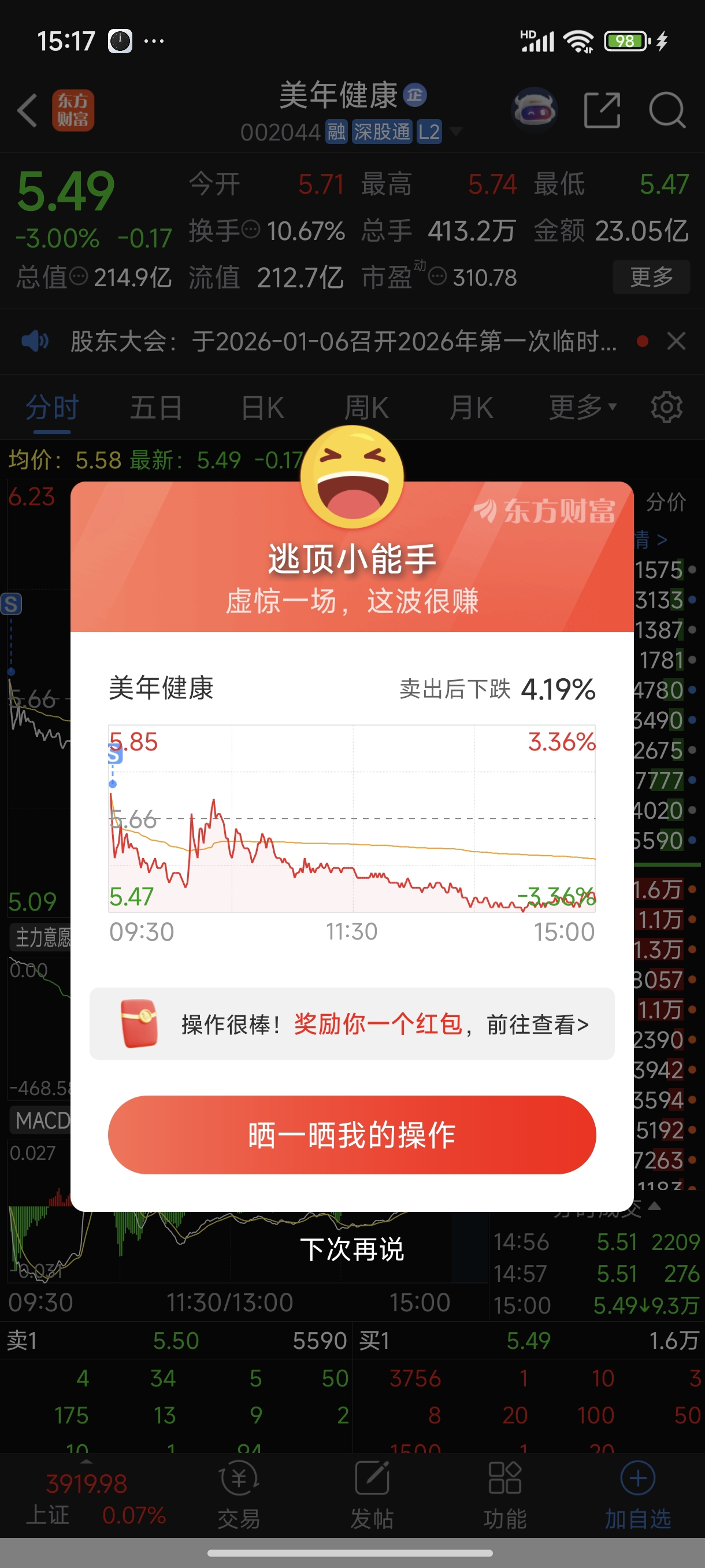 $美年健康(SZ002044)$ 还好5.73跑了,不然亏死了