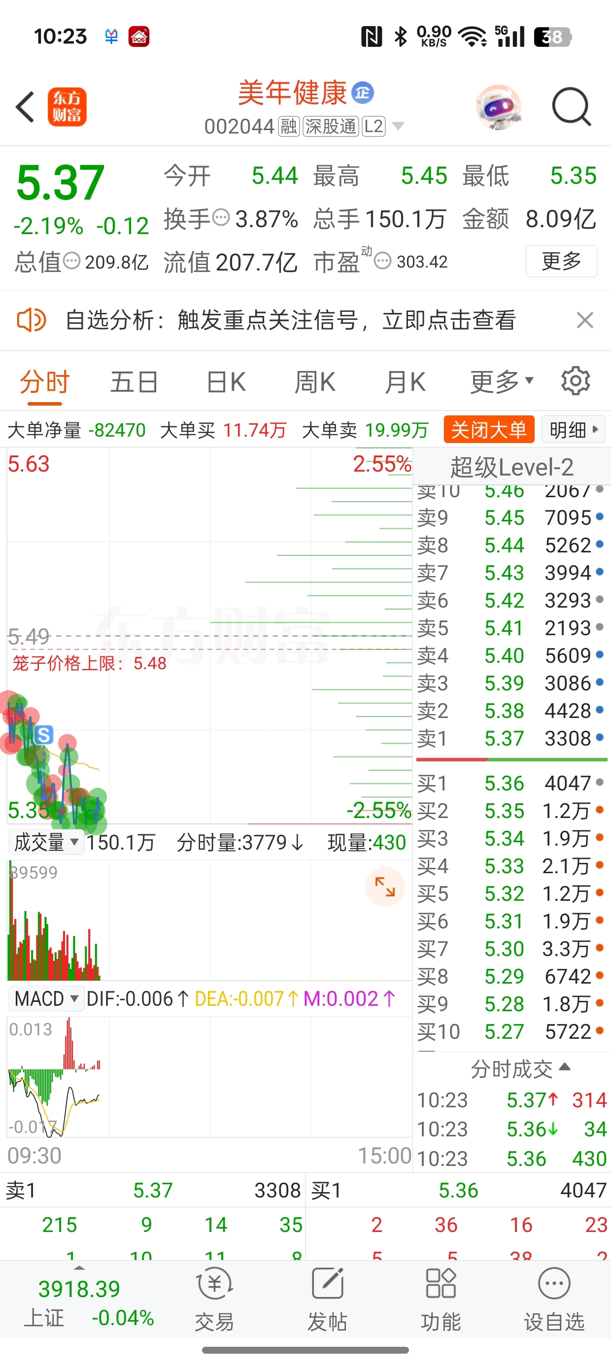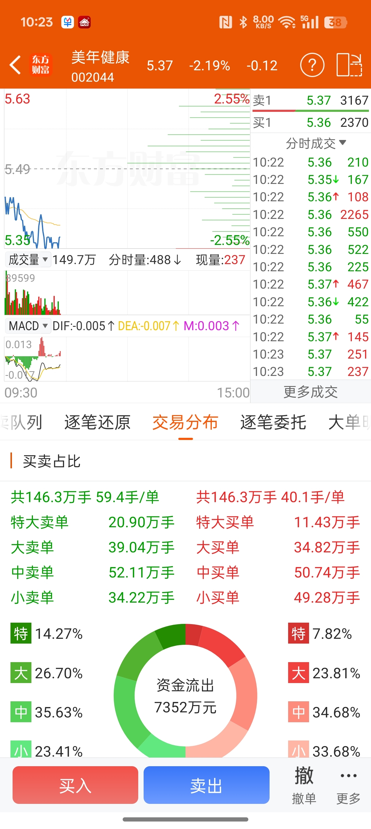 今天上涨的缺口,被回补了,还留一个下跌缺口之后,我就最后100股也卖了!不关注了