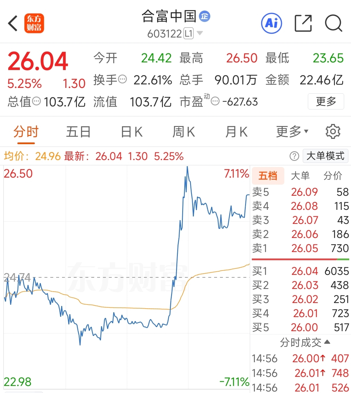 合富中国(603122.SH)控股股东12月24日减持公司股份9000股抄底大妖