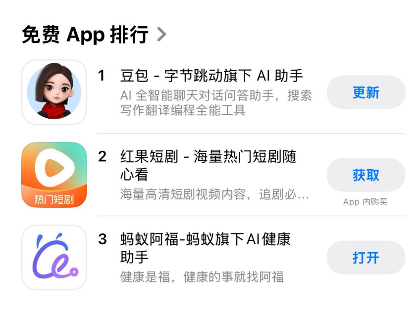 市场热度首先体现在消费级应用的快速走红。本月,蚂蚁集团旗下AI健康应用“蚂蚁阿福”冲上了苹果应用商店免费下载榜前列,在QuestMobile最新发布的AI应用周活榜单中位列垂类第一,目前日处理健康提问500万次。