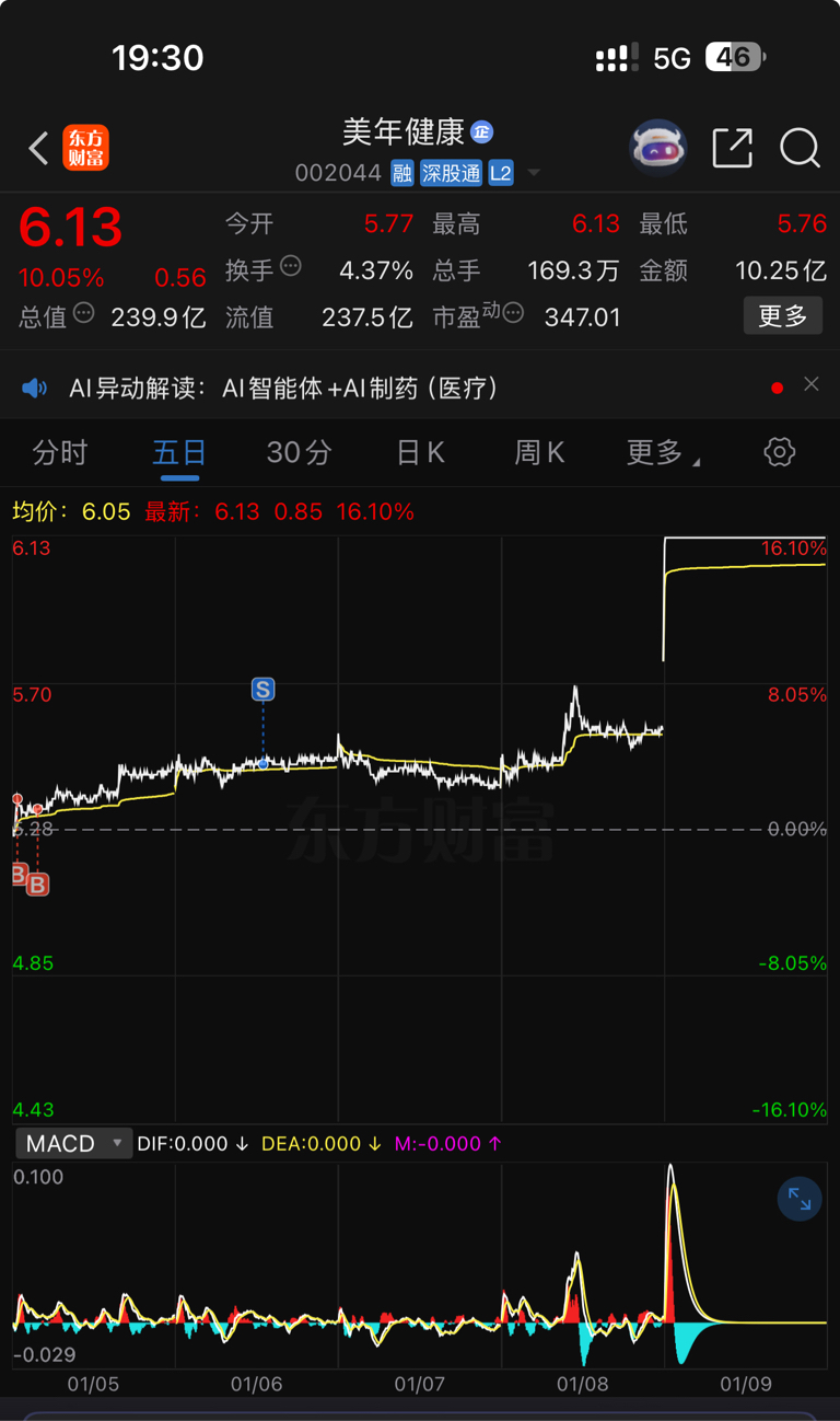 $美年健康(SZ002044)$ 持有一天,前天刚卖就暴涨,哦