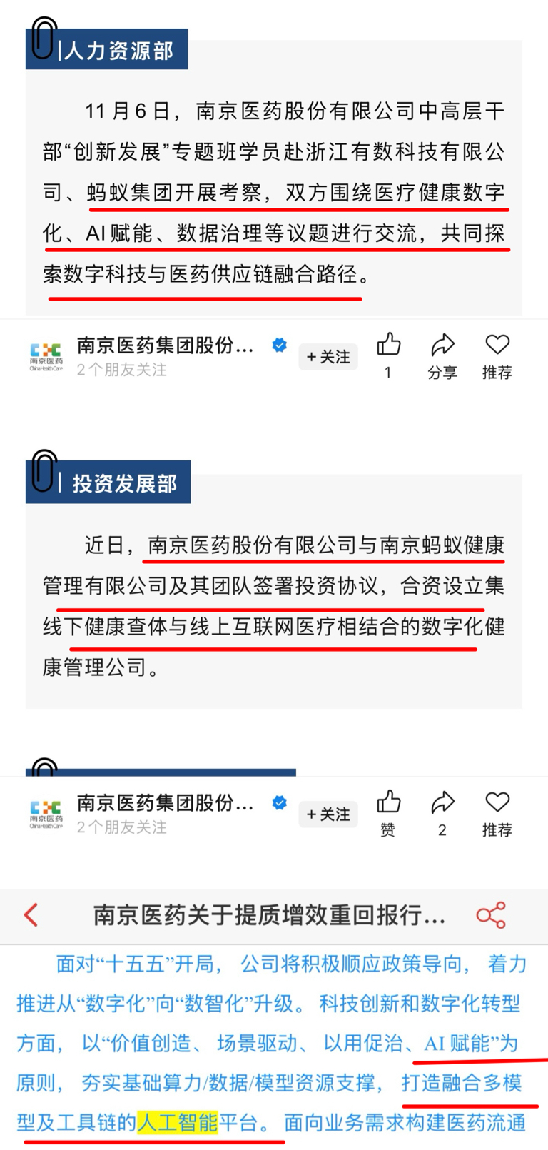 $美年健康(SZ002044)$ 蚂蚁阿福 南京医药