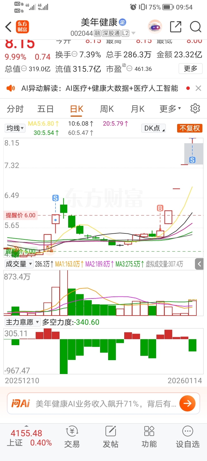 $美年健康(SZ002044)$ 胆小了吃个4板,留下的兄弟发财