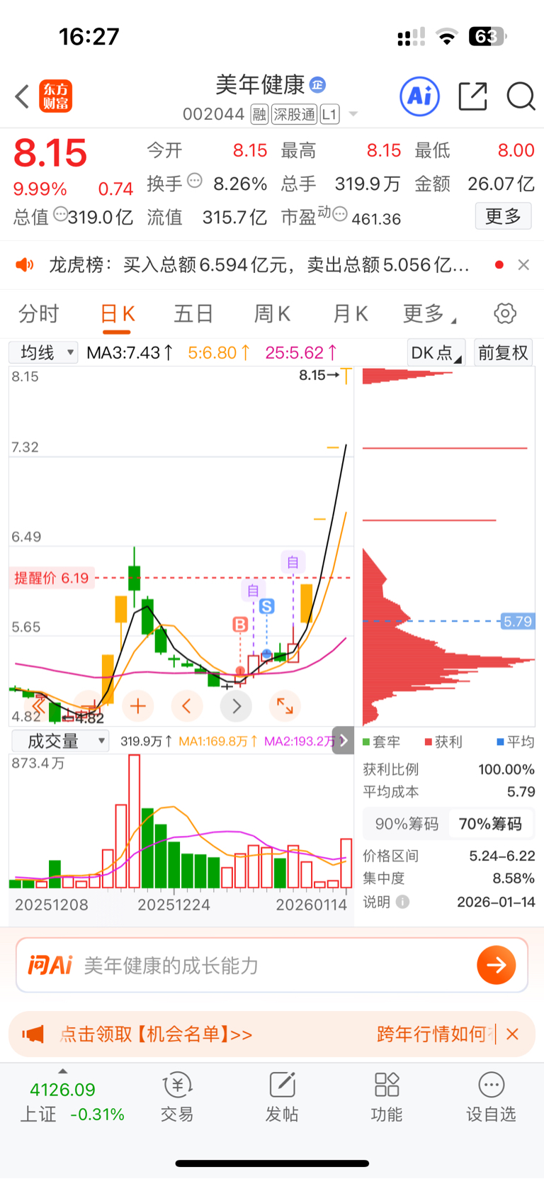 $美年健康(SZ002044)$ 差点发财