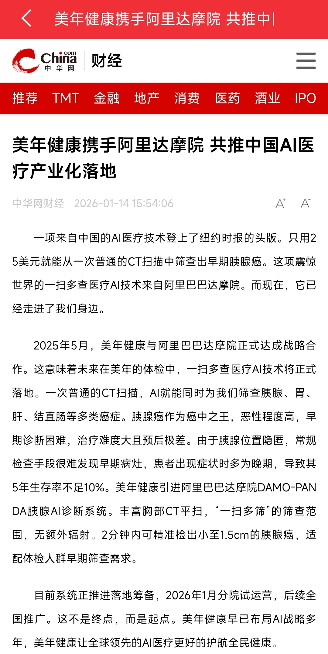 $美年健康(SZ002044)$ 美年ai医疗成果落地,震惊世界666