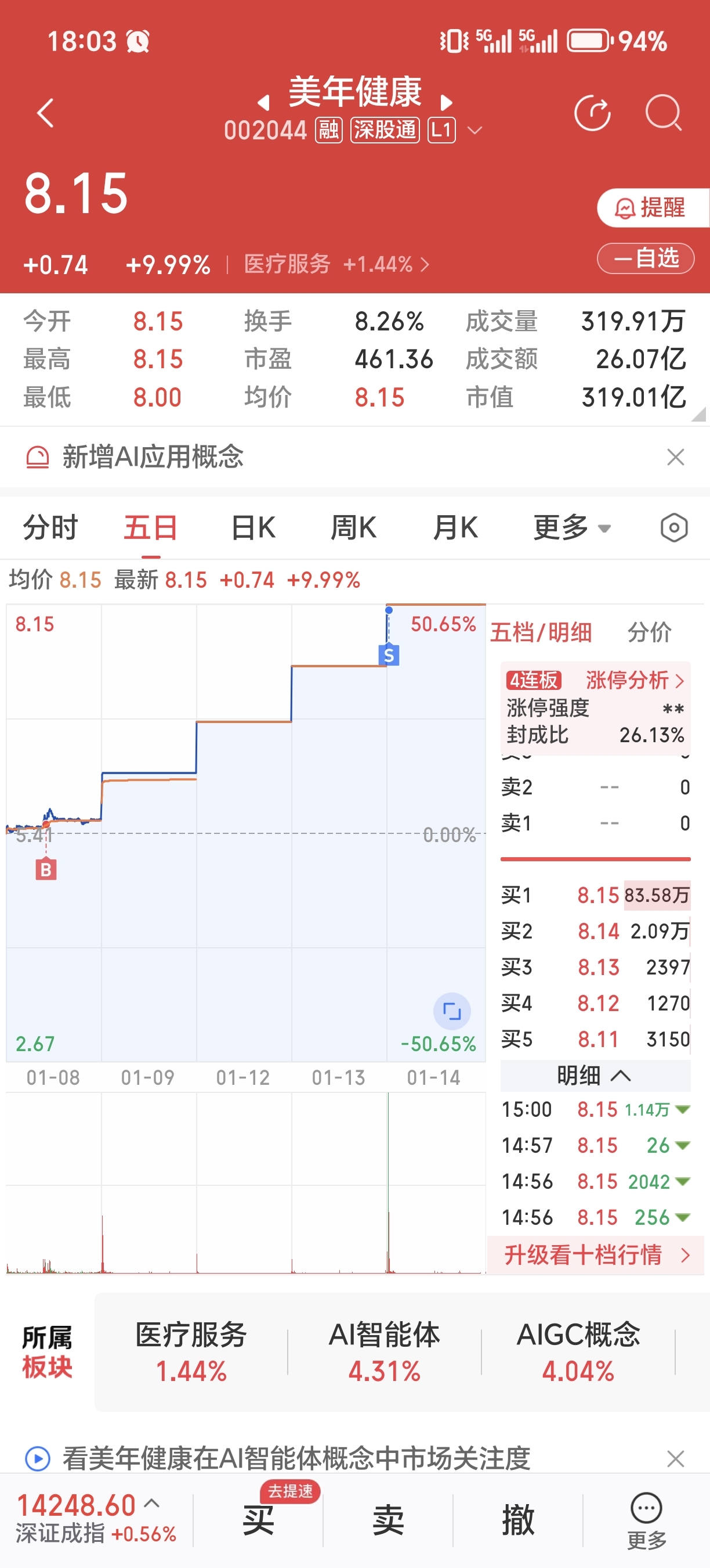$美年健康(SZ002044)$ 被洗走了,祝留下的继续发财