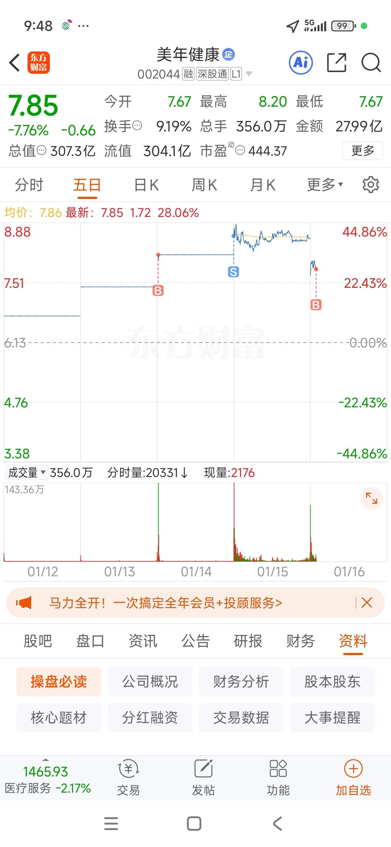 $美年健康(SZ002044)$ 再次满仓杀入!