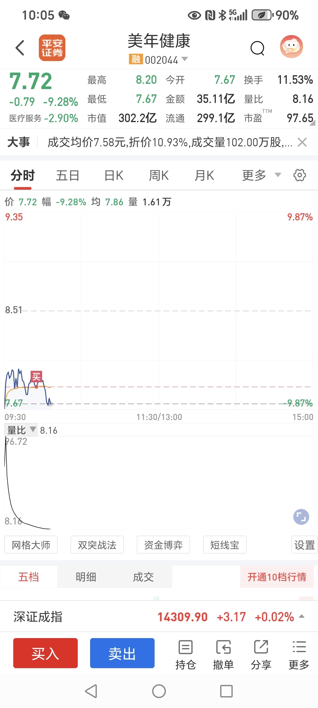 $美年健康(SZ002044)$ 希望游资大佬给力吧,周一能不亏钱出来就算烧高香了