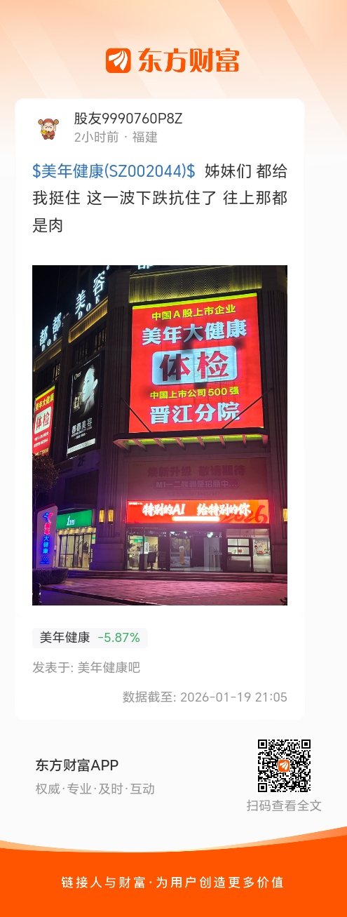 $美年健康(SZ002044)$  姊妹们 都给我挺住 这一波下跌抗住了 往上那都是肉