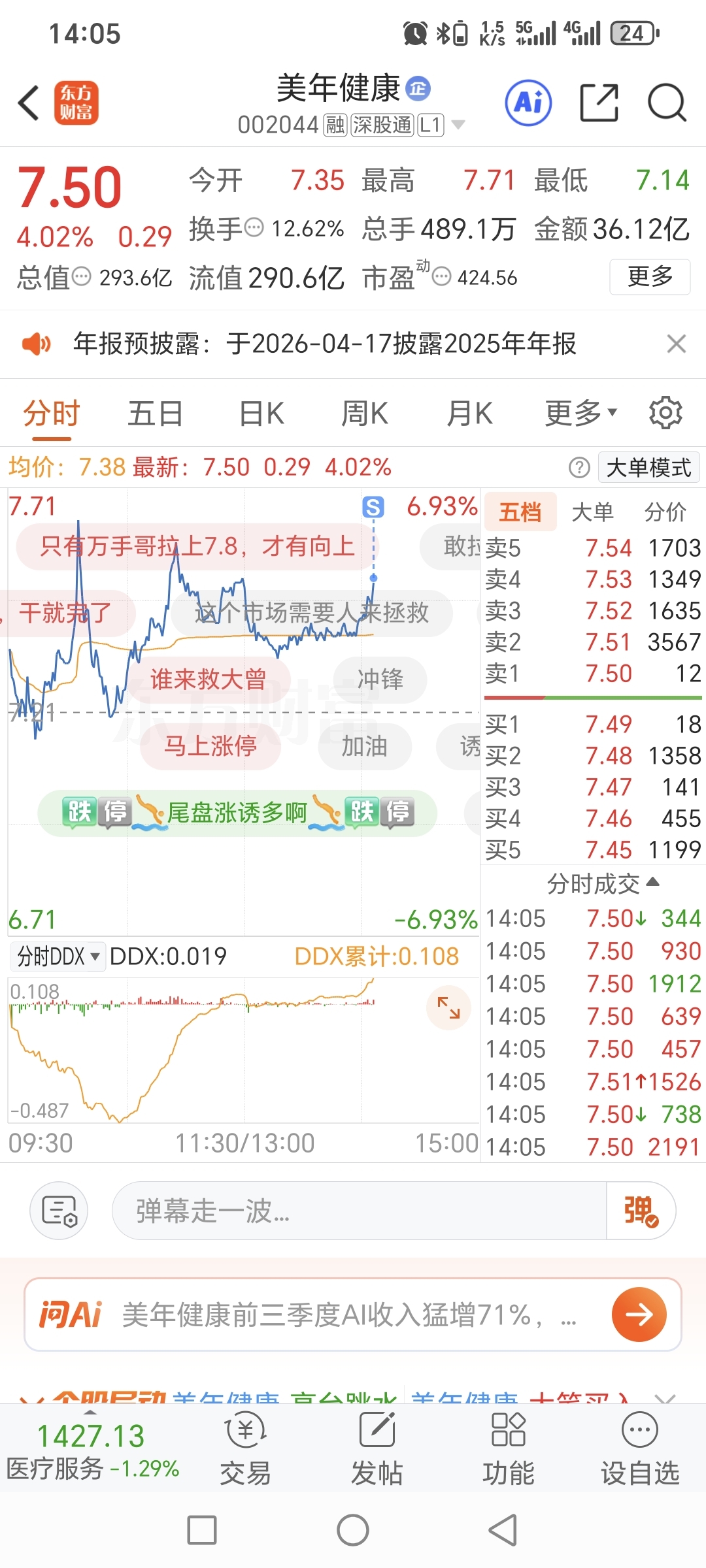 $美年健康(SZ002044)$ 砸大曾子