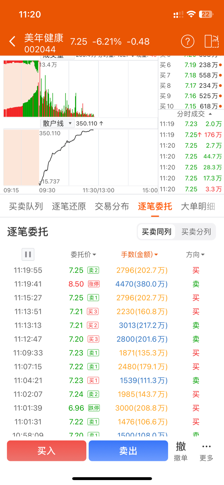 $美年健康(SZ002044)$ 哈哈哈无奈的挂涨停价卖出哈哈哈哈哈哈